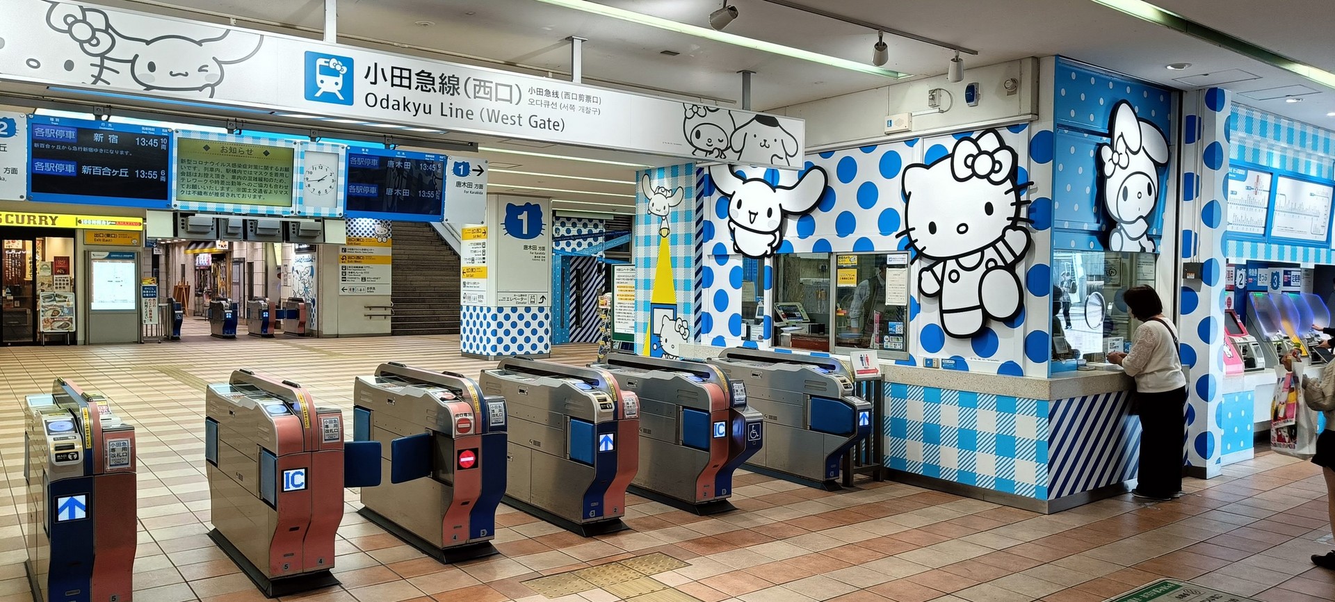 Durante il viaggio verso il Tempio di Gotokuji, si può già intuire l’atmosfera unica che attende i visitatori: persino l’interno del treno, incluse le maniglie, è decorato con immagini di gatti.