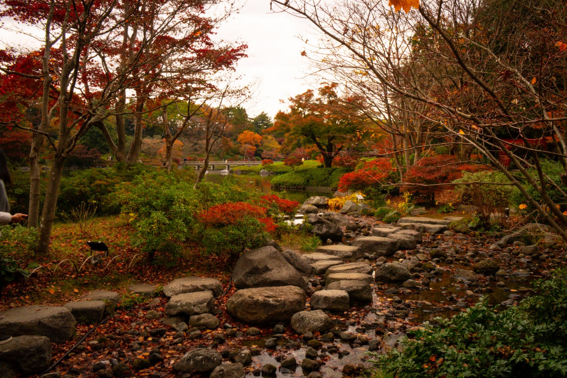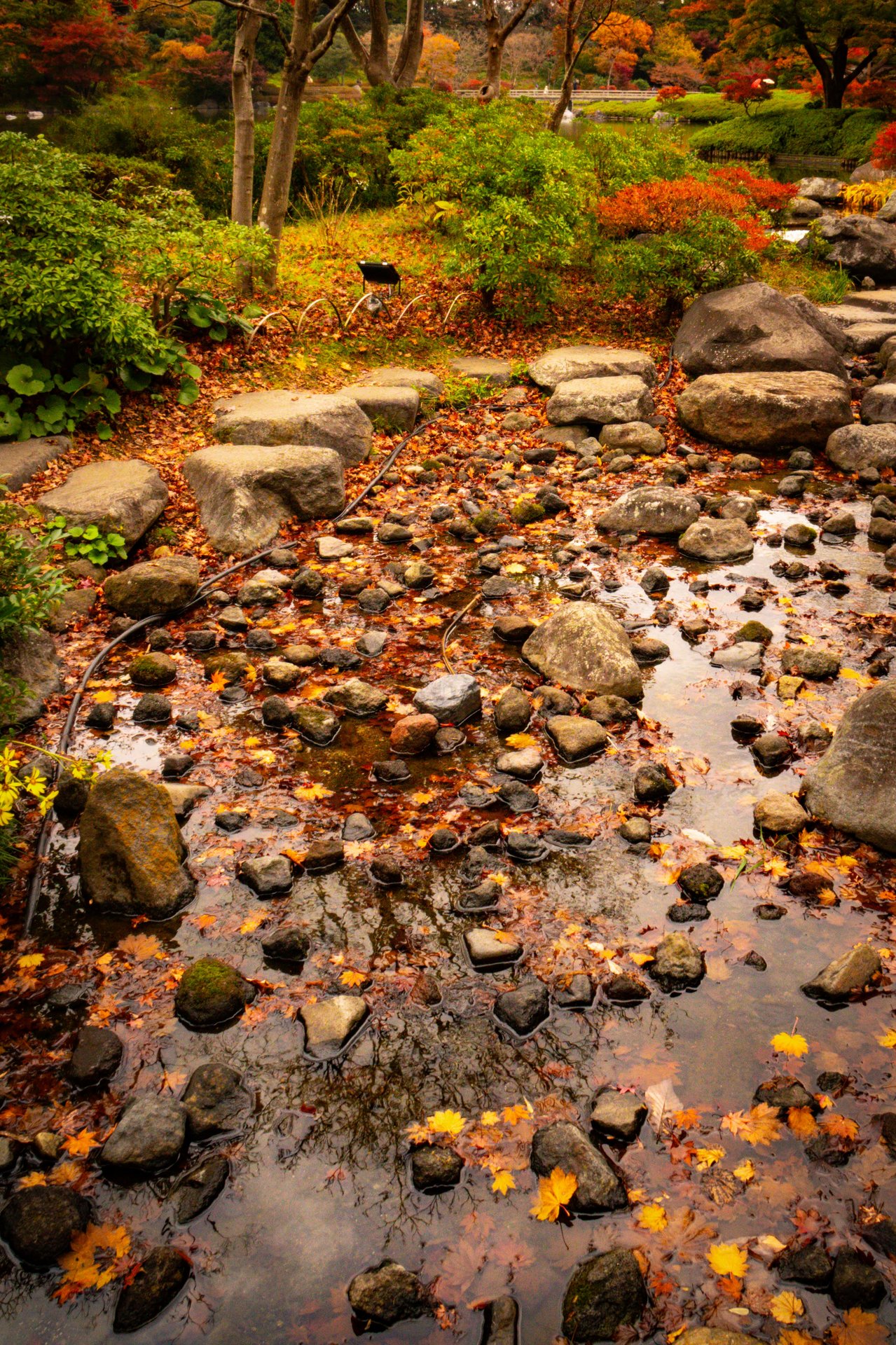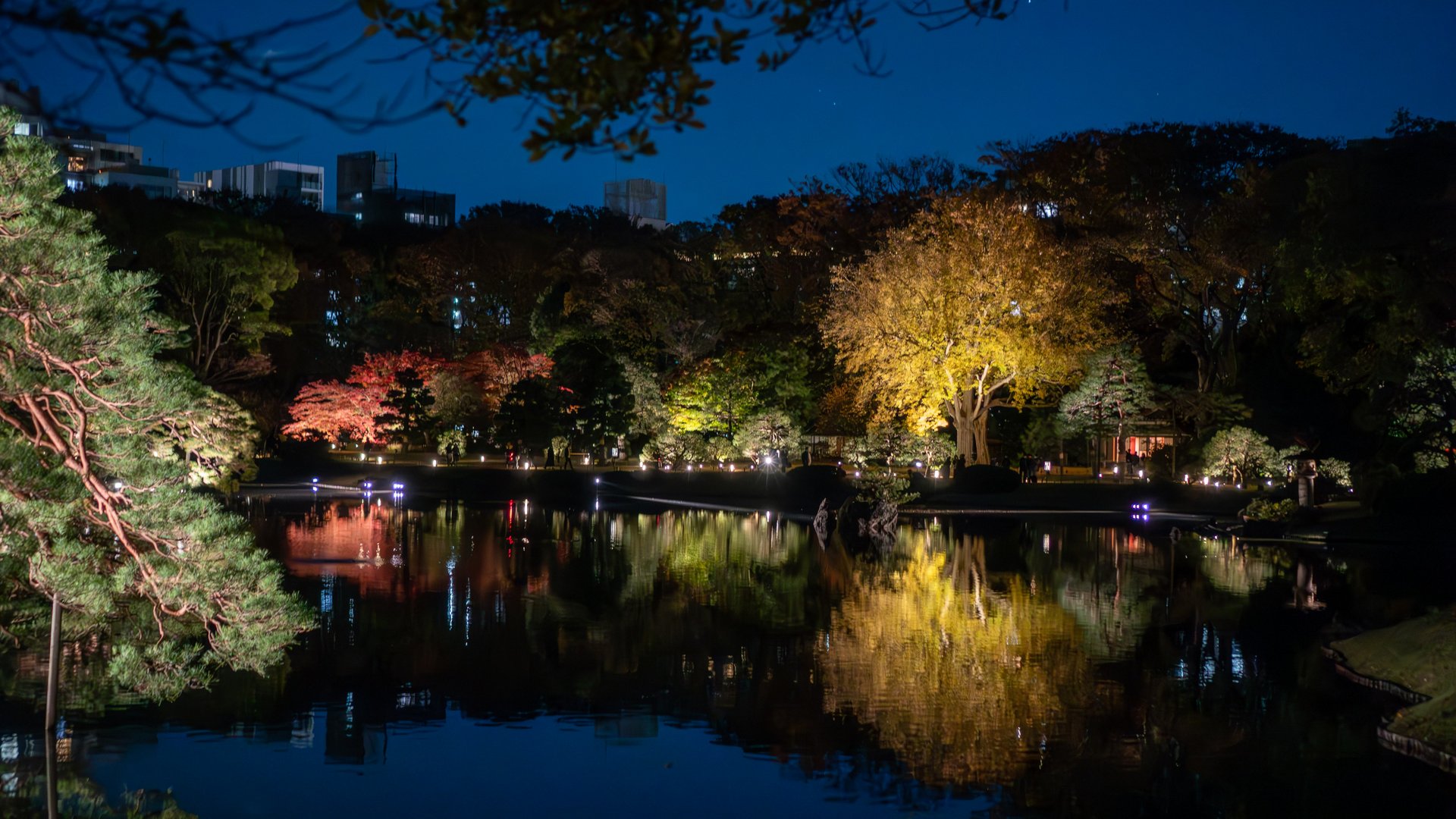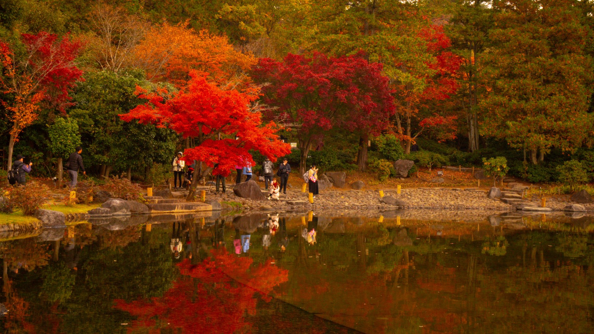 Tuttavia, è possibile apprezzare i vari colori del momiji anche in altre aree del parco, poiché i giardini ospitano numerosi alberi di ginkgo e altre specie distribuiti in tutto lo spazio.