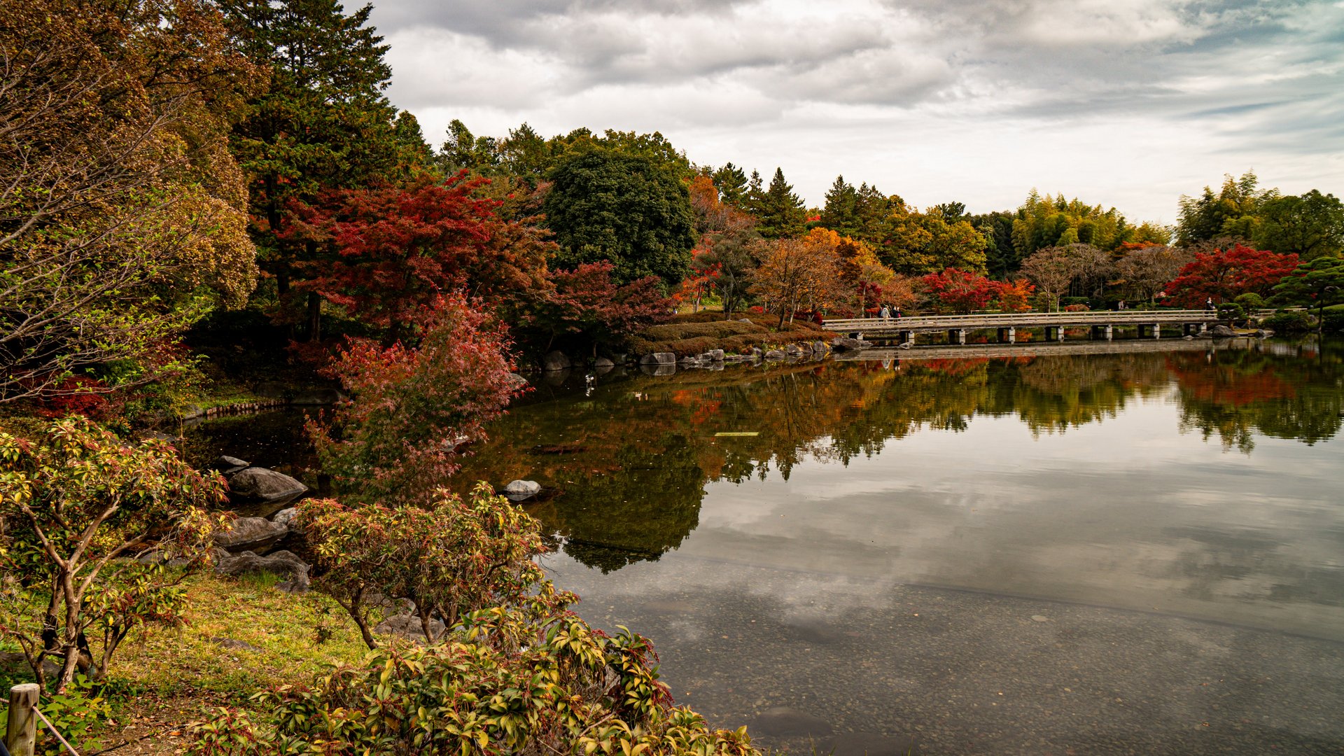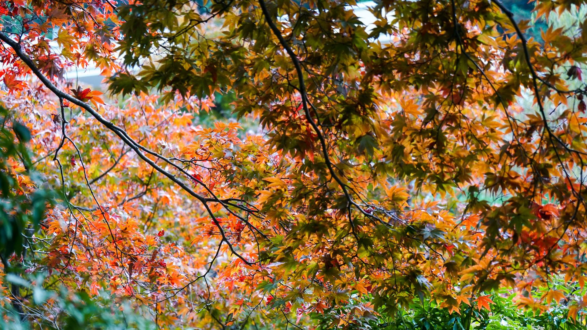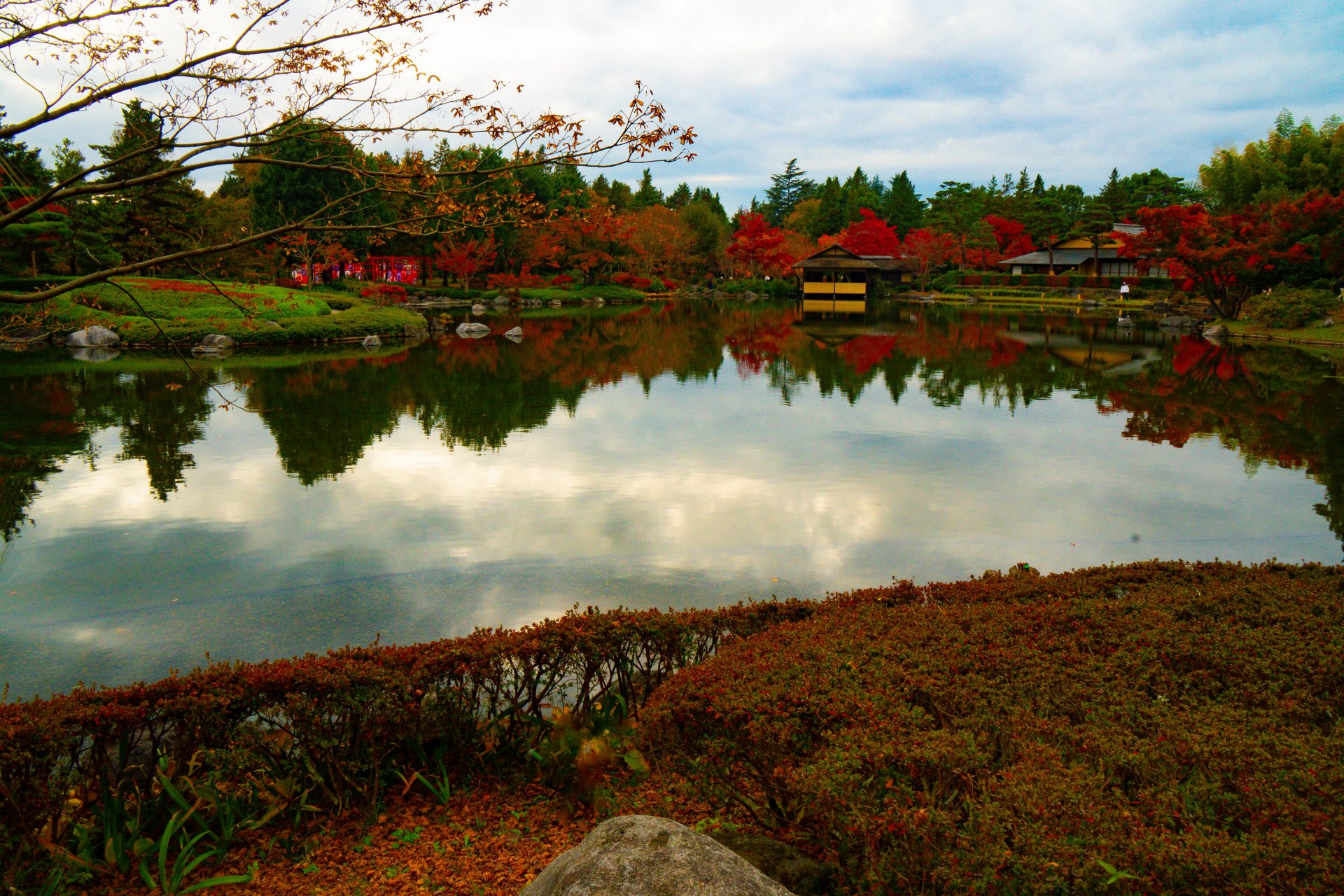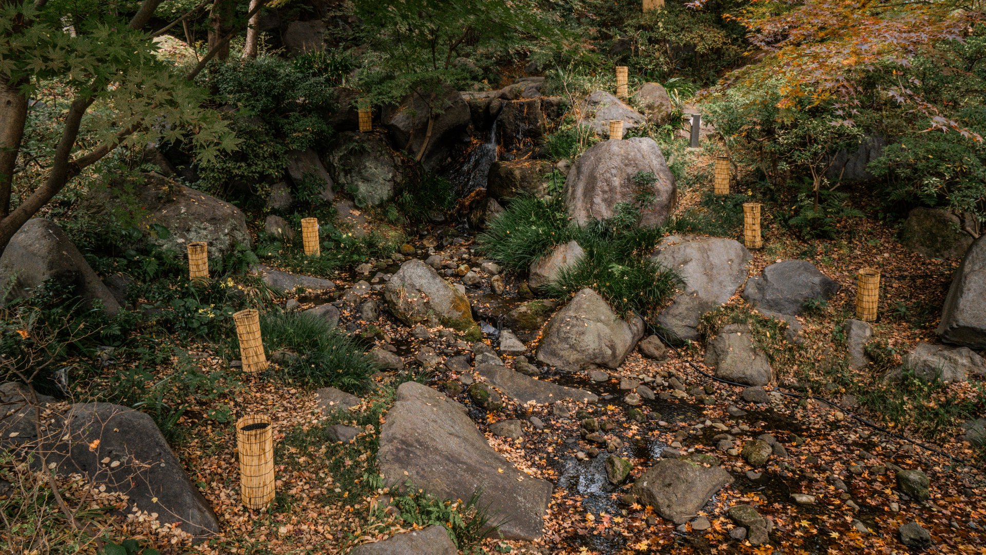 Tuttavia, è possibile apprezzare i vari colori del momiji anche in altre aree del parco, poiché i giardini ospitano numerosi alberi di ginkgo e altre specie distribuiti in tutto lo spazio.