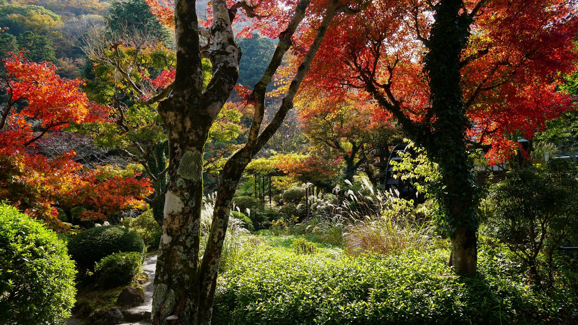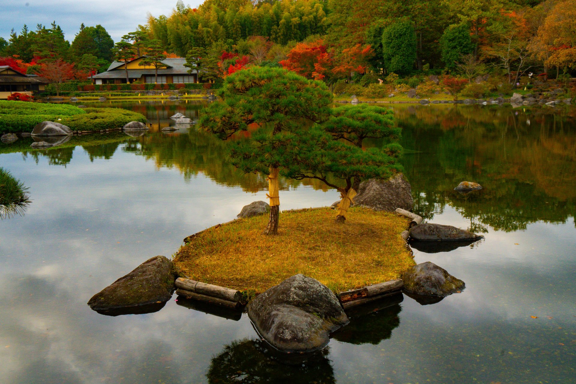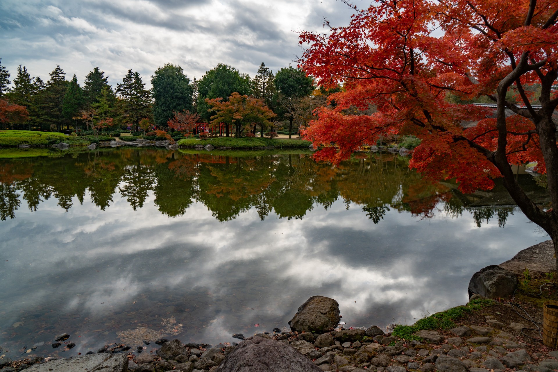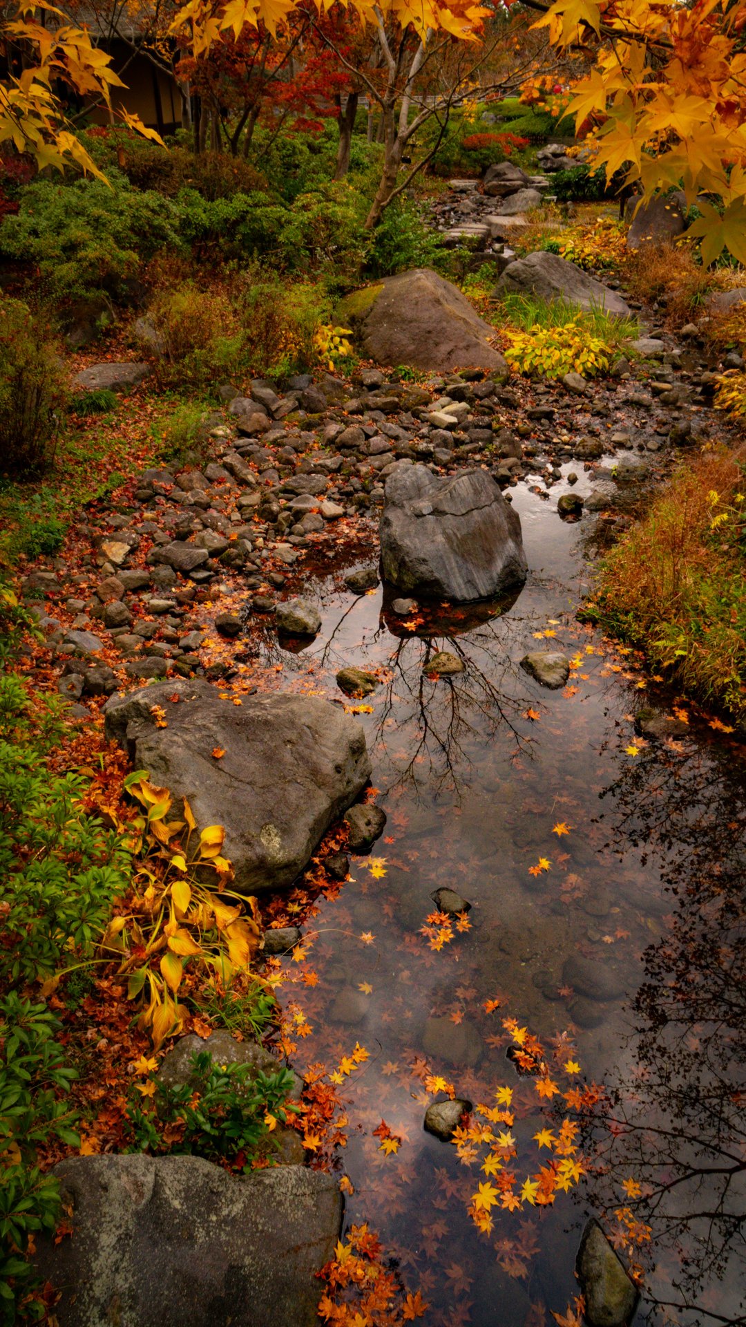 Tuttavia, è possibile apprezzare i vari colori del momiji anche in altre aree del parco, poiché i giardini ospitano numerosi alberi di ginkgo e altre specie distribuiti in tutto lo spazio.