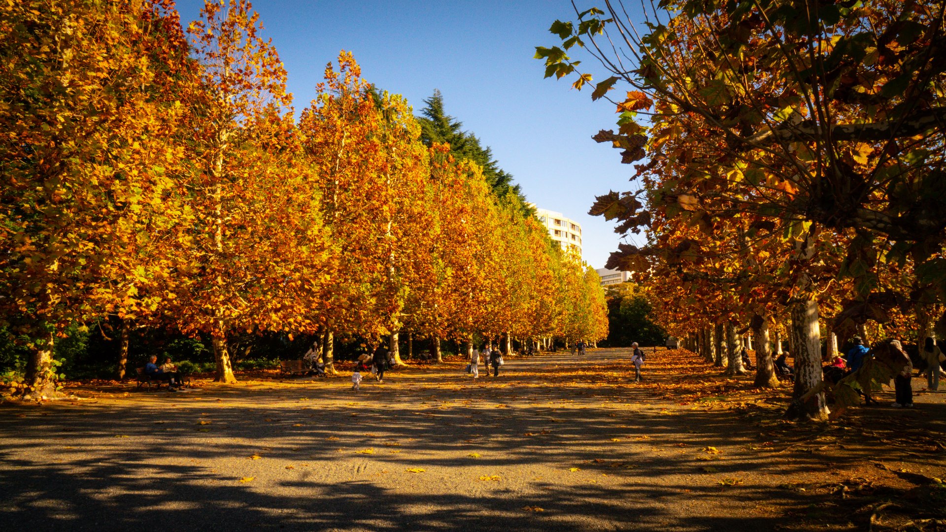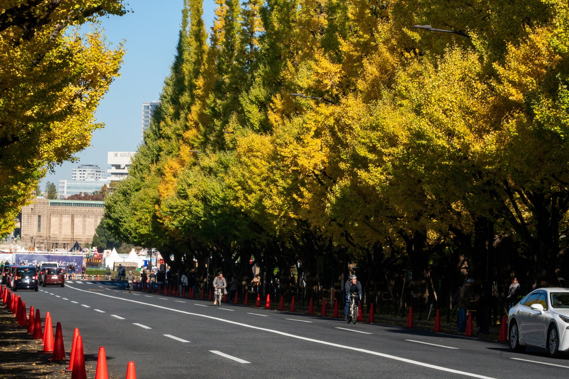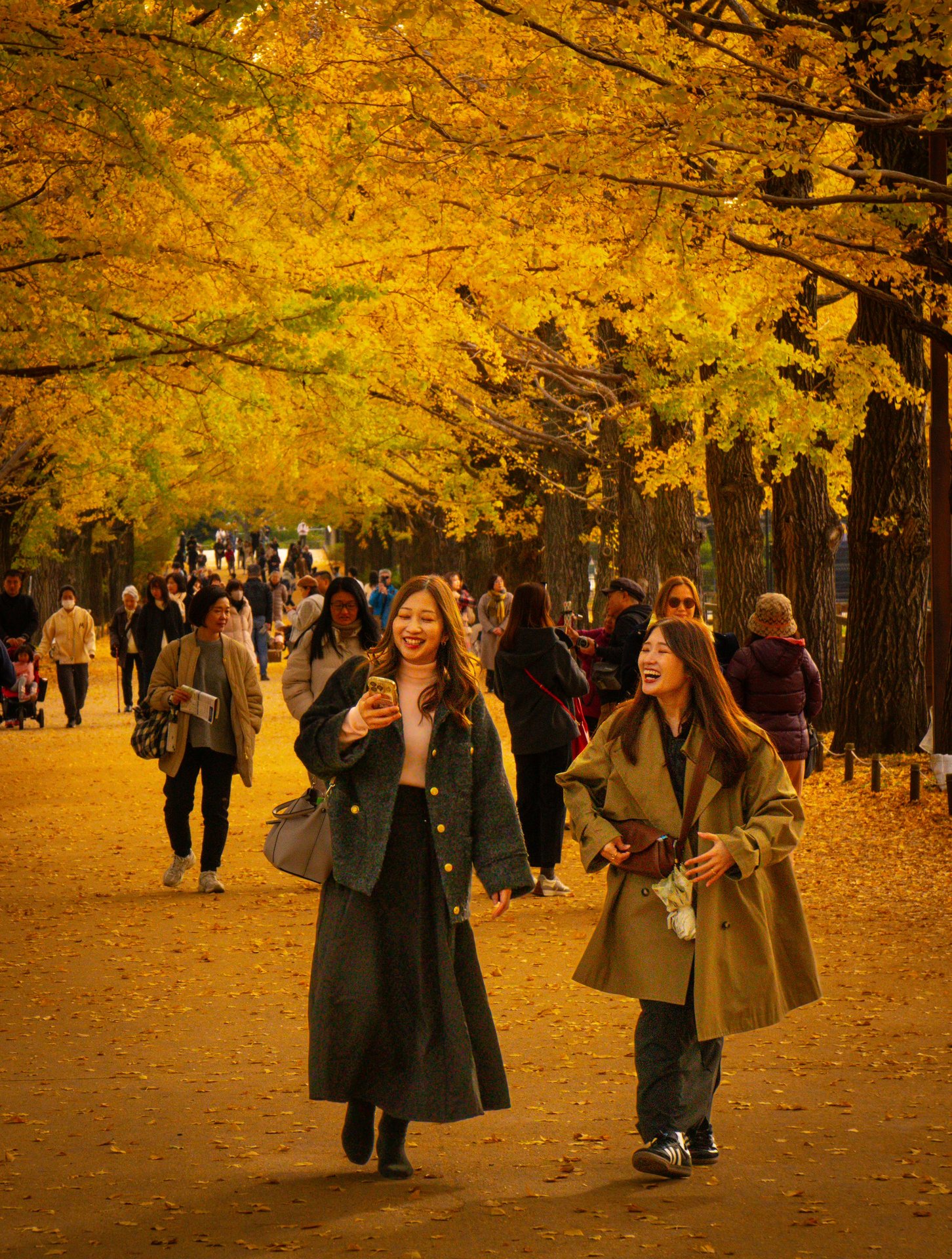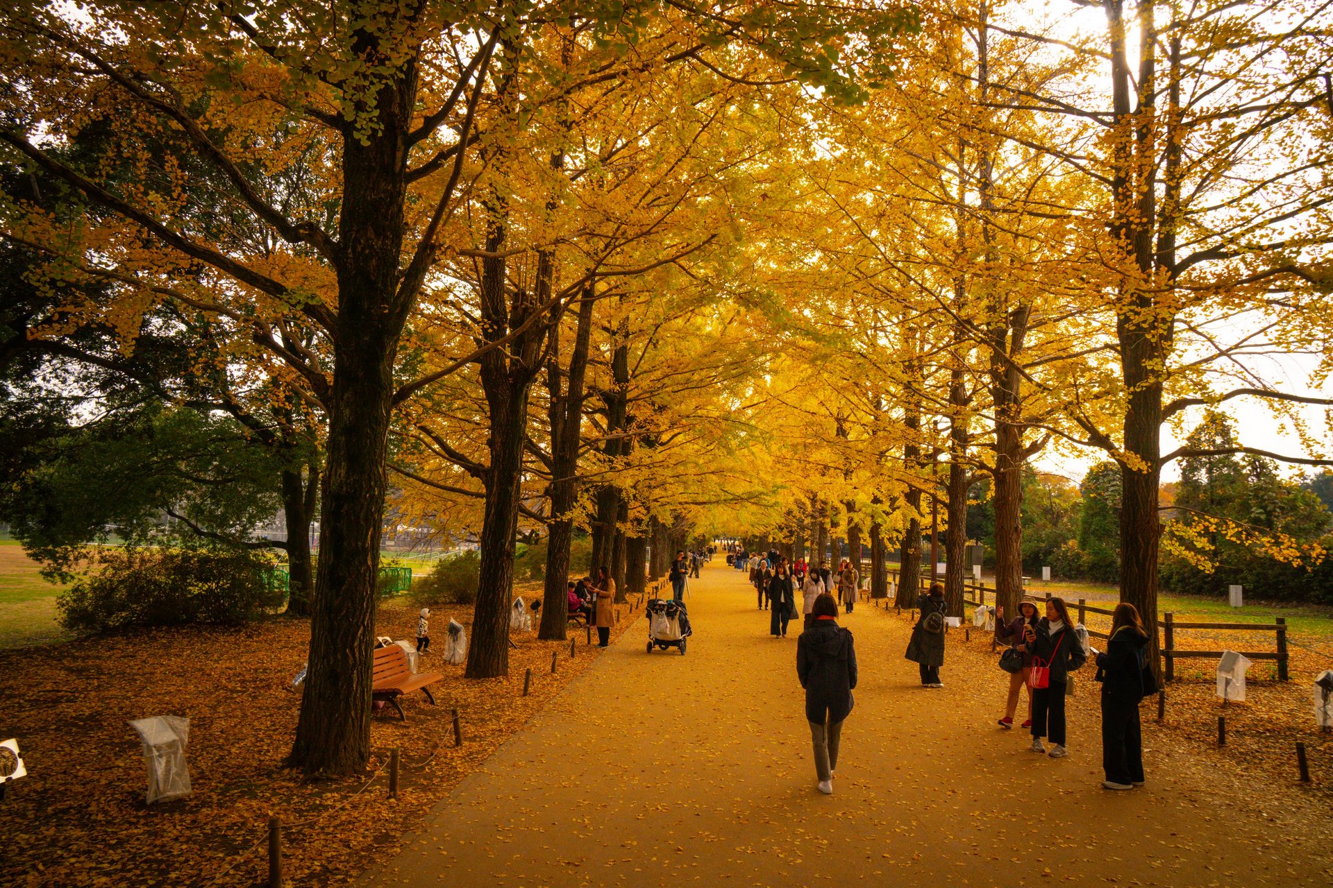 Le foglie dorate dei ginkgo creano un’atmosfera incantevole, attirando sia i locali che i turisti che passeggiano lungo l’avenue per godere della bellezza del paesaggio.