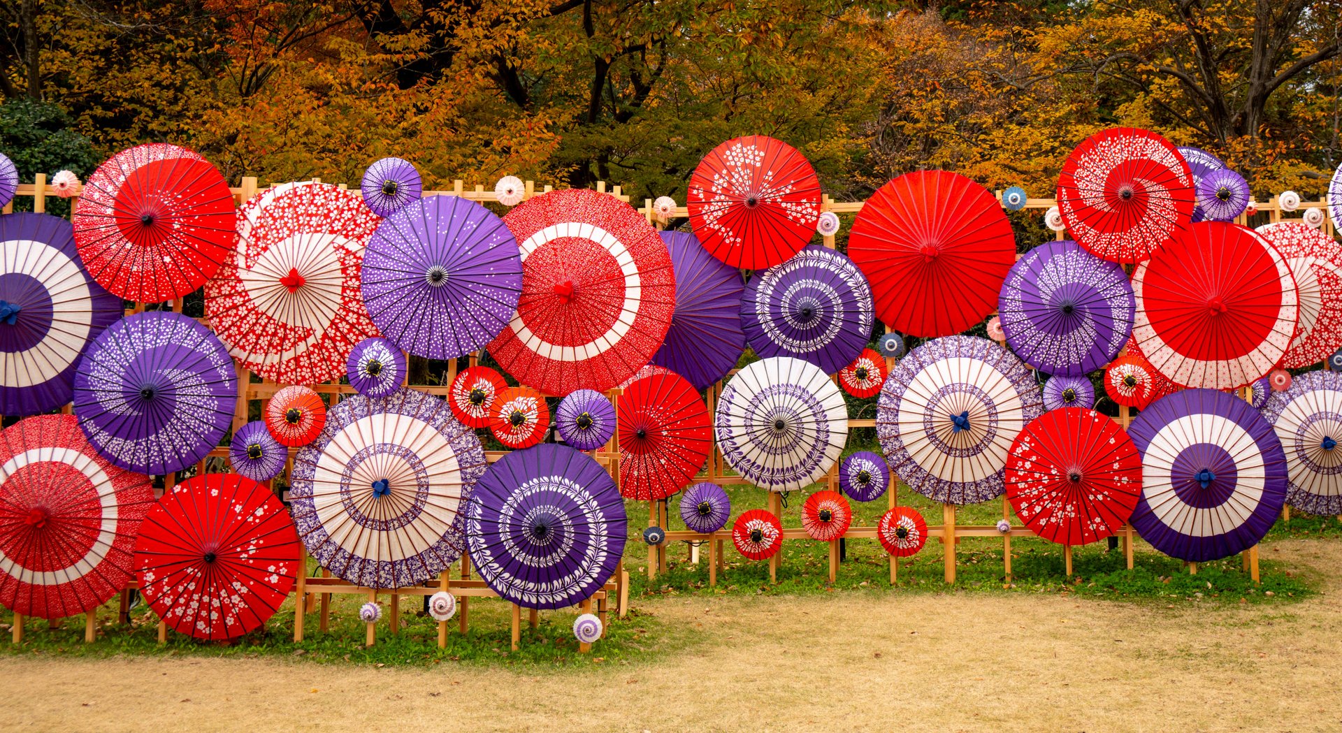 Durante l’autunno, gli aceri giapponesi, i ginkgo e molte altre specie di alberi si tingono di rosso, arancione e giallo, trasformando il parco in una paletta di colori viventi.