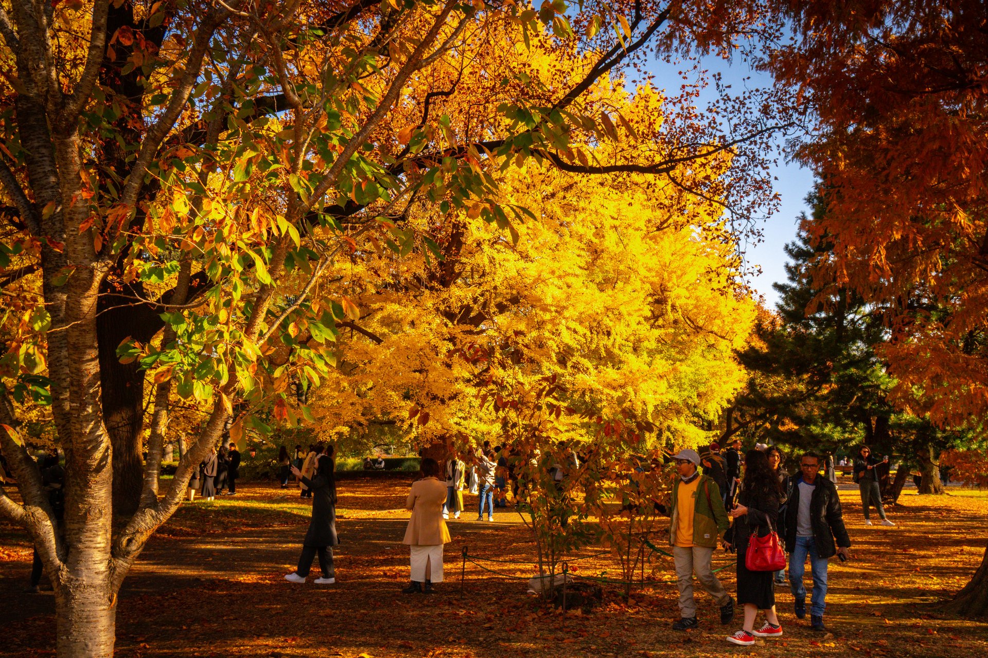 Qui, i visitatori possono godere di un’ampia varietà di alberi, come ginkgo, aceri giapponesi e zelkova, che in questo periodo dell’anno mostrano colori sbalorditivi.
