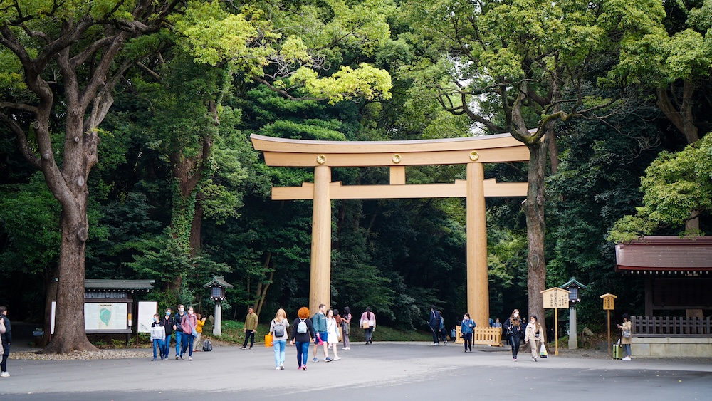 Una delle entrate del santuario si trova dietro la stazione di Harajuku.