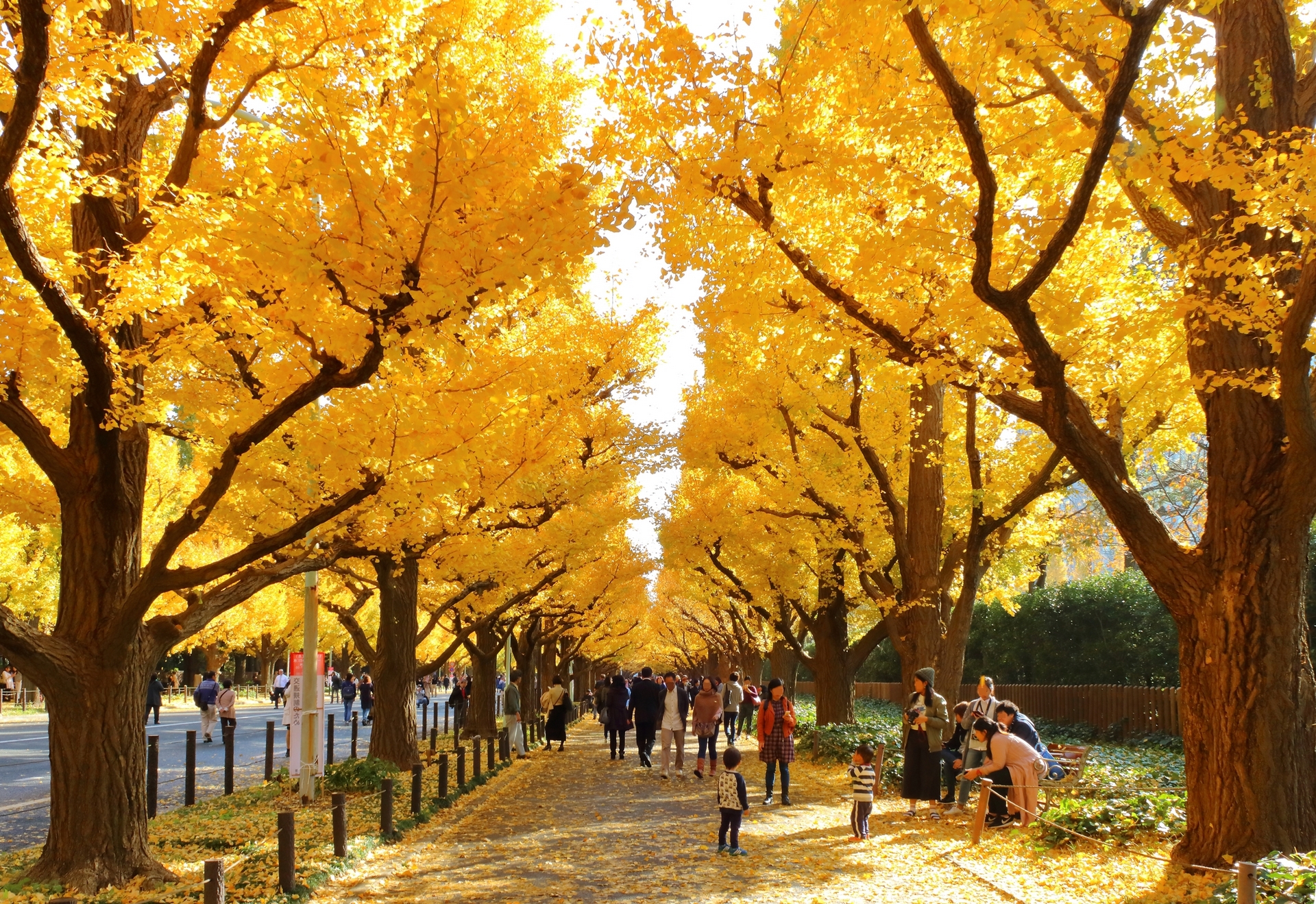 Questa famosa avenue, lunga circa 300 metri e fiancheggiata da 146 alberi di ginkgo, si trasforma in un’esplosione di giallo brillante durante i mesi autunnali.