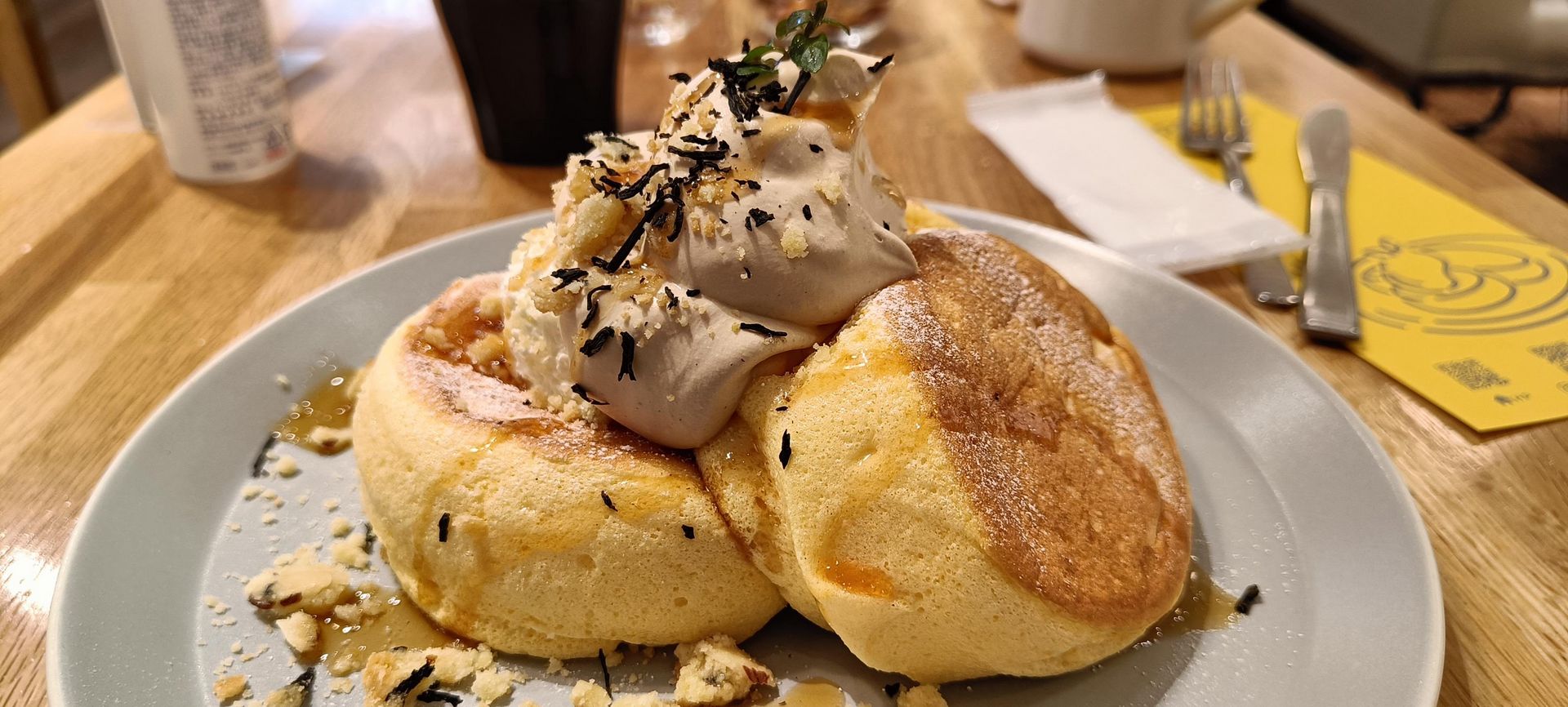 “A Happy Pancake” è una gioia culinaria che fa parte di una rinomata catena di locali, con filiali situate in luoghi iconici come Ikebukuro, Shibuya, Ginza e Omotesando.