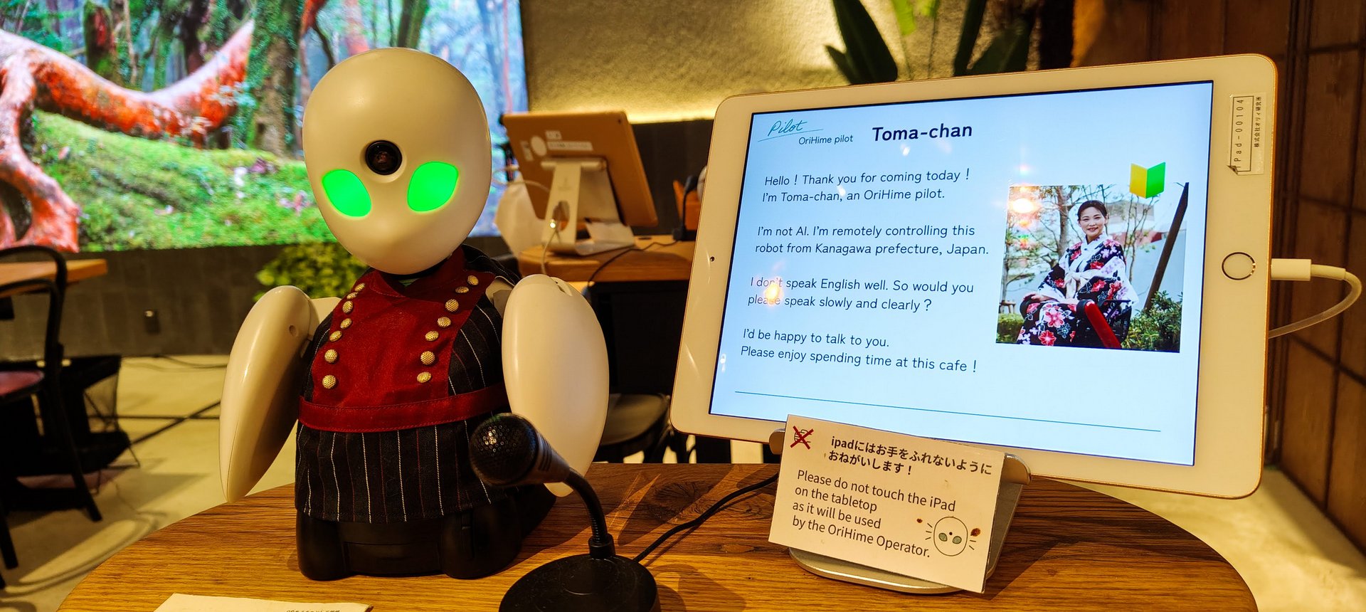 Questo locale unico nel suo genere è servito da robot avatar controllati a distanza da persone con gravi disabilità fisiche o motorie, che così possono lavorare e interagire con i clienti in tempo reale.
